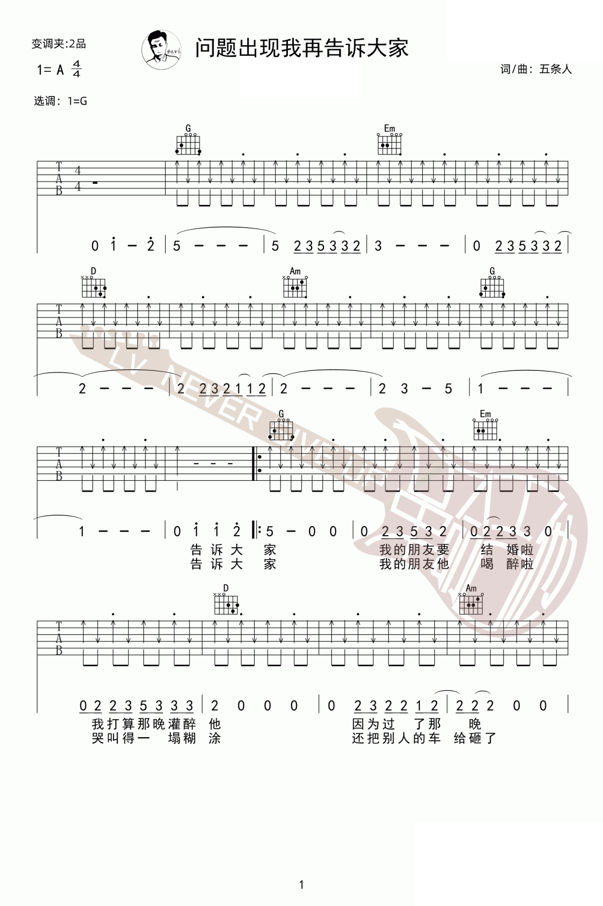 问题出现我再告诉大家 问题出现我再告诉大家吉他谱-吉他曲谱 曲谱 歌谱下载