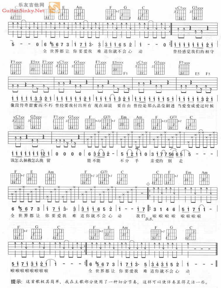 相关歌谱花儿乐队-我们能不能不分手吉他谱