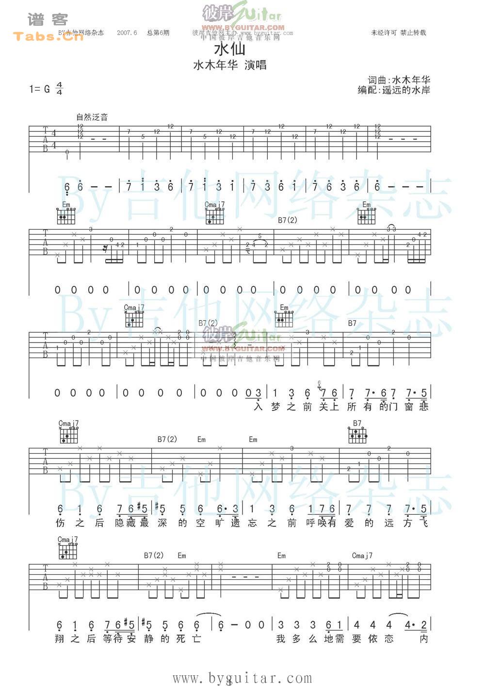 水仙 完美版吉他谱该歌谱演奏者为水木年华