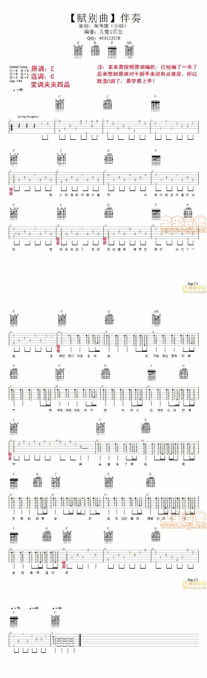 赋别曲吉他谱该歌谱演奏者为周传雄