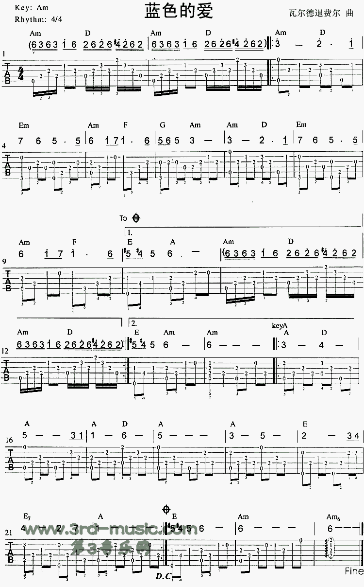 蓝色的爱(独奏曲)吉他谱