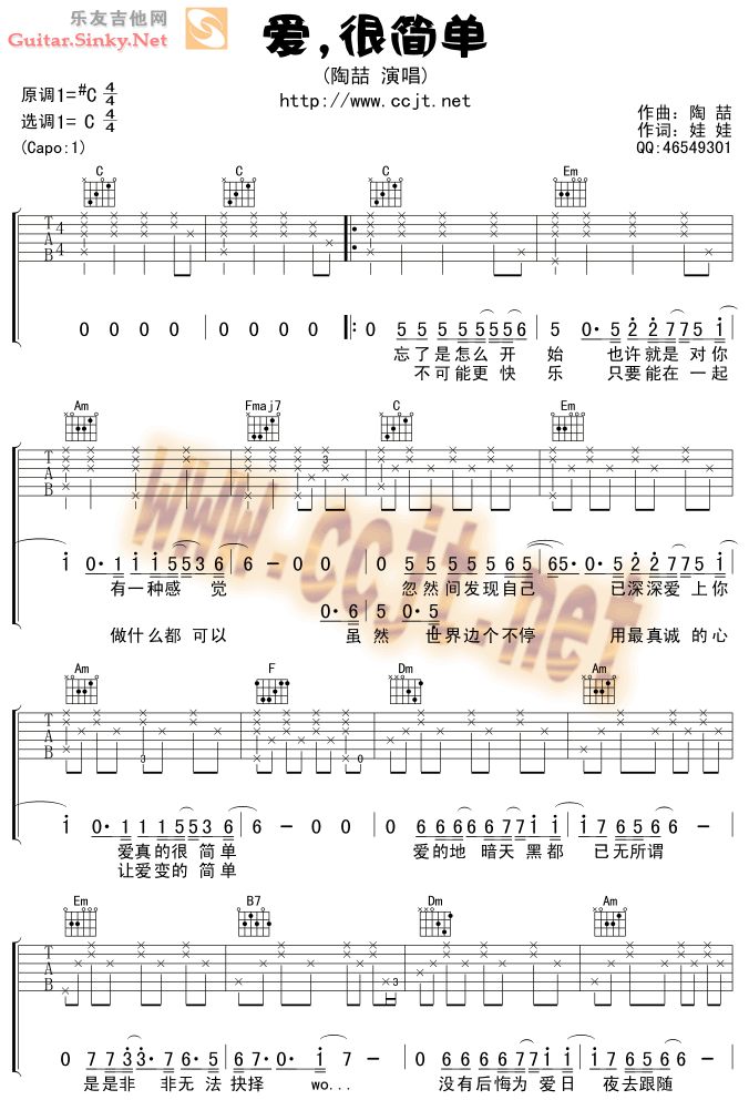 爱,很简单吉他谱该歌谱演奏者为陶喆