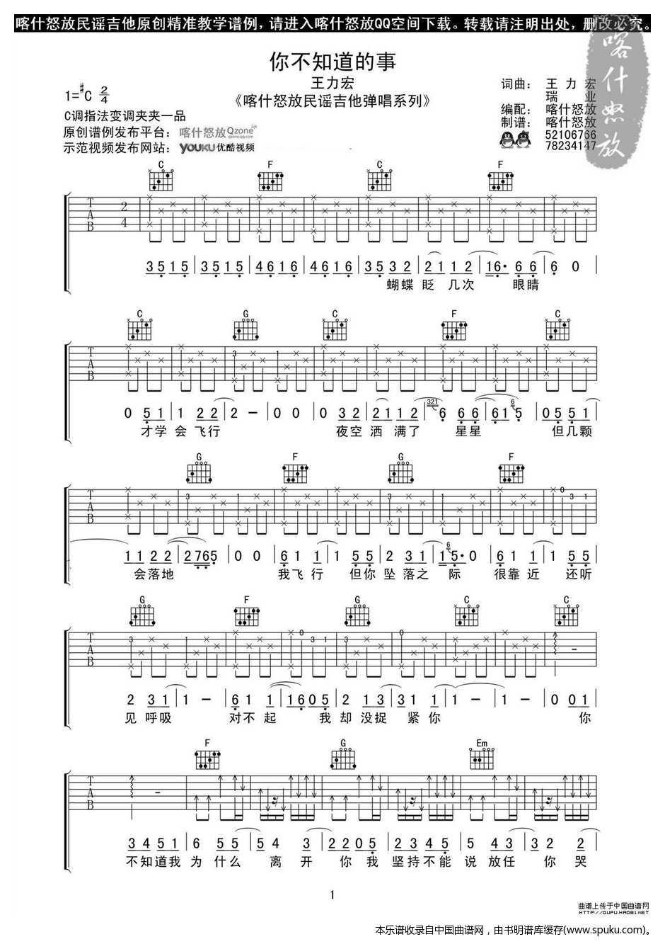 你不知道的事(喀什怒放编配版)吉他谱该歌谱演奏者为王力宏