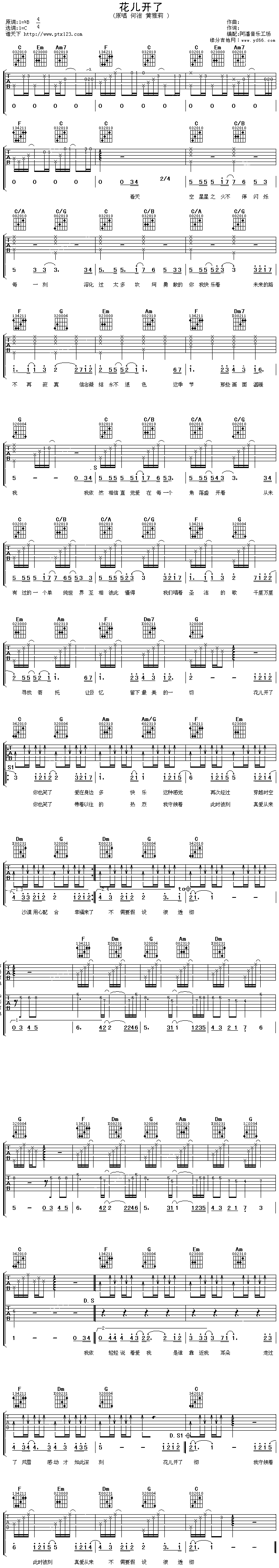 花儿开了吉他谱