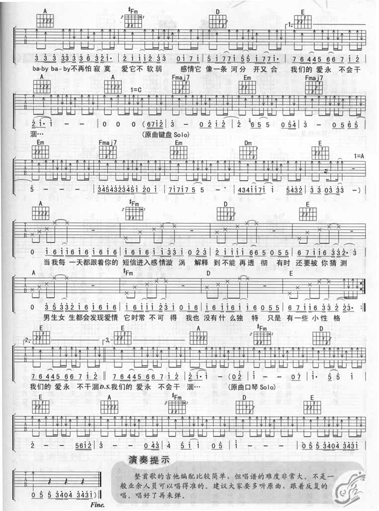 不要再害怕寂寞吉他谱