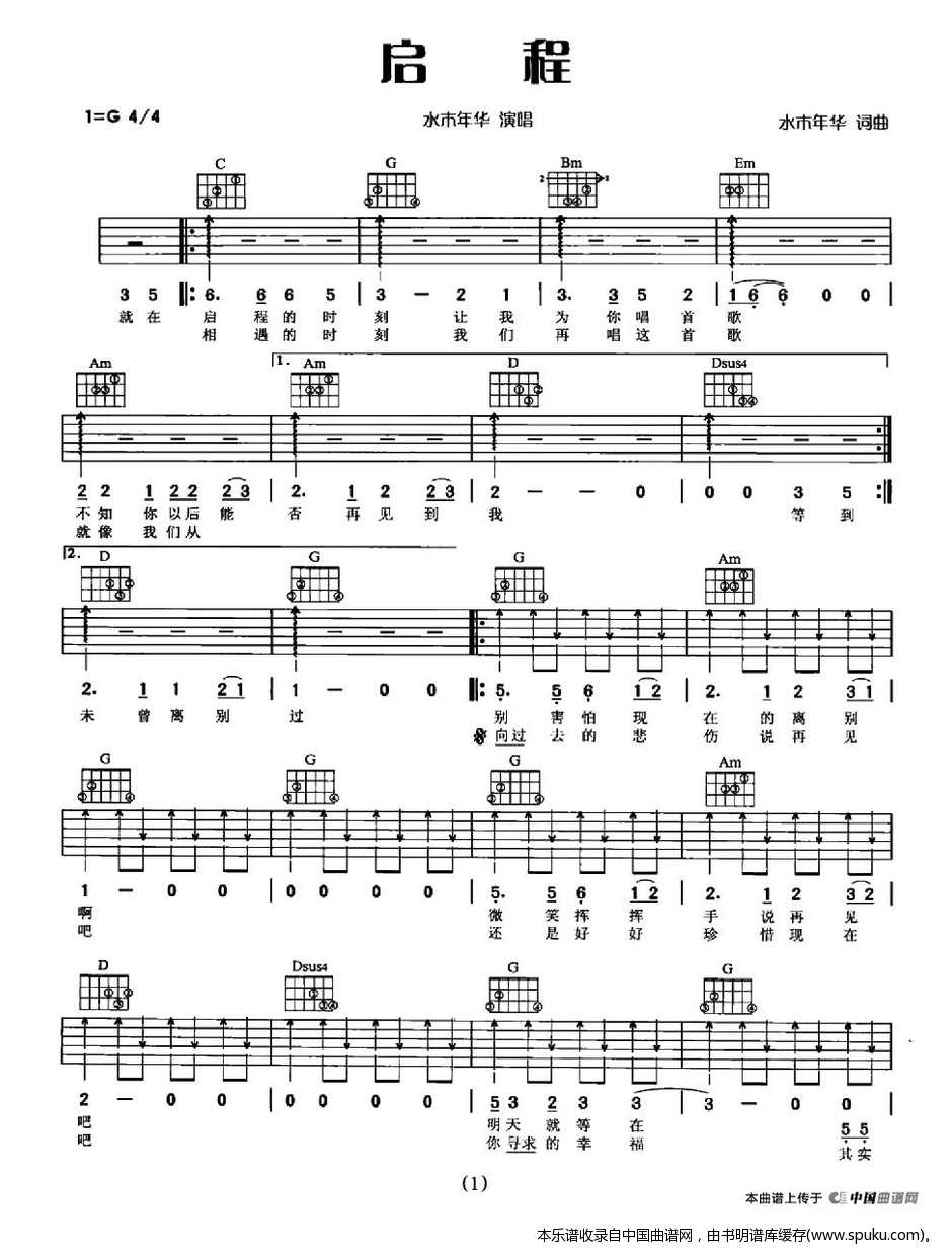 启程(水木年华词曲)吉他谱该歌谱演奏者为水木年华