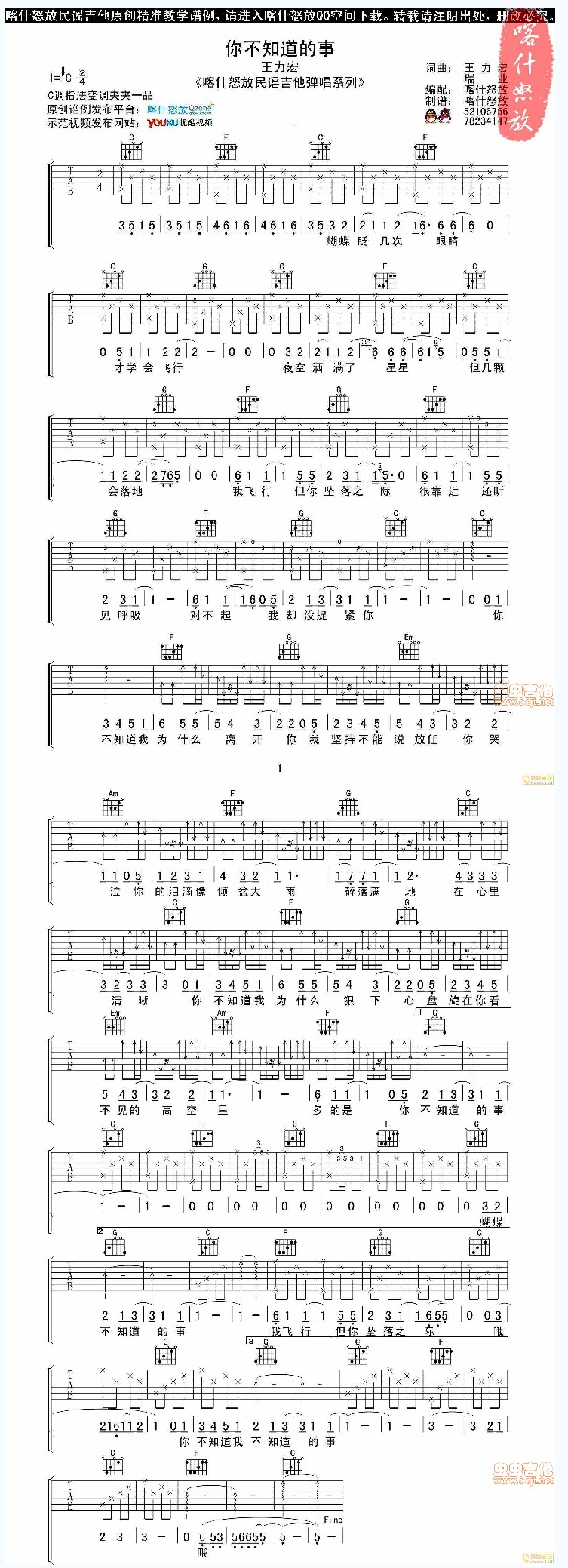 你不知道的事 喀什怒放吉他谱该歌谱演奏者为王力宏