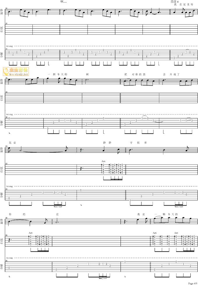 冬天的树吉他谱该歌谱演奏者为吴虹飞