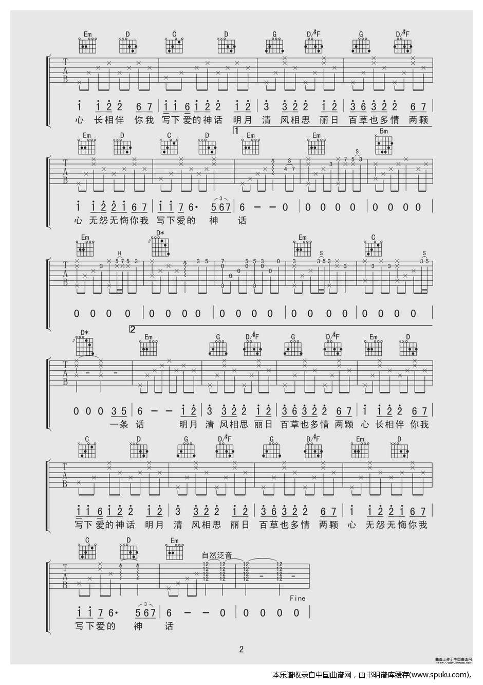 ,歌曲名称为康美之恋,歌谱类型为吉他谱。《康美之恋》是为广东康美药业股份有限公司制作的MTV音乐电视,由广东康美药业股份有限公司投资制作,在央视《著名企业音乐电视展播》中播出。《康美之恋》由影视明星李冰冰、任泉担纲主演,由著名作曲家王晓锋与著名导演童年全力打造,歌星谭晶演唱片中歌曲。作品风格优雅、情深意长,美妙动听的歌曲诉说着创业的信念与情怀,诉说着马兴田与许冬瑾神奇秀丽的山水间倾情演绎相互爱恋、共同创业的感人故事。后该歌曲经过修改歌词后改名为《爱的神话》,收录于谭晶个人专辑《看见》中。[1]