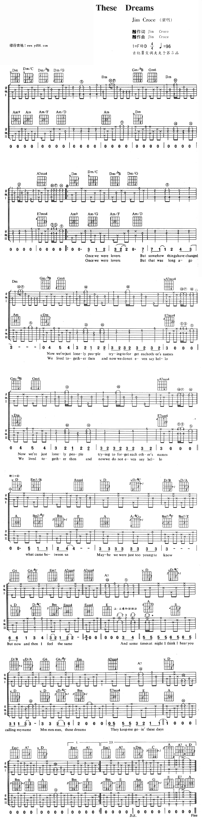 These Dreams(这些梦)吉他谱该歌谱演奏者为Jim Croce