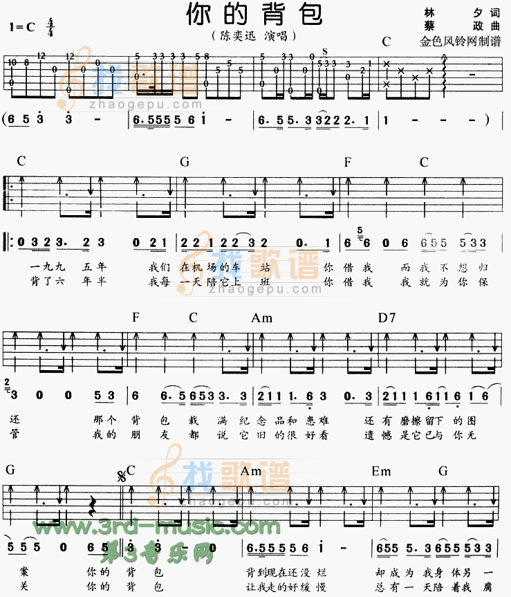 你的背包吉他谱