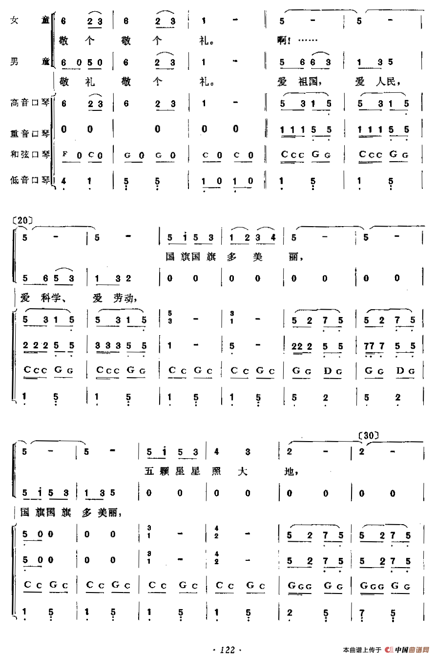 国旗国旗多美丽(童声合唱+口琴乐队伴奏)口琴谱