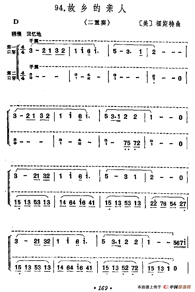 扬琴乐谱曲谱 黎胞的怀念(黄英森曲 成照华改编)