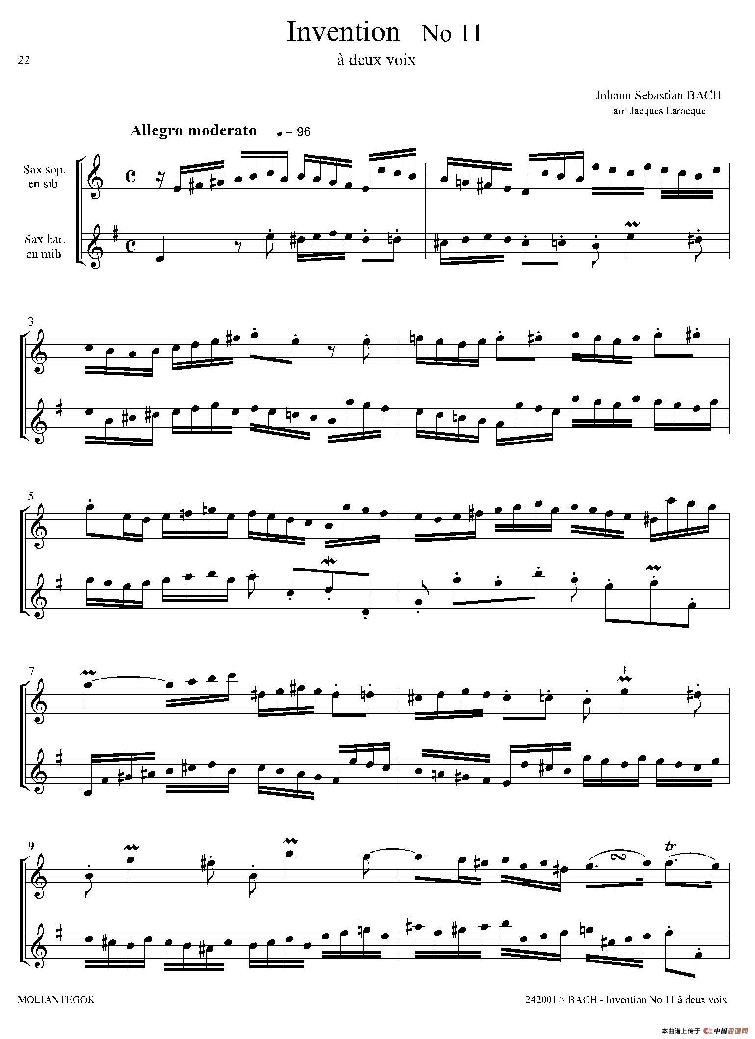 Inventions 巴赫15首创意曲二重奏—11萨克斯谱