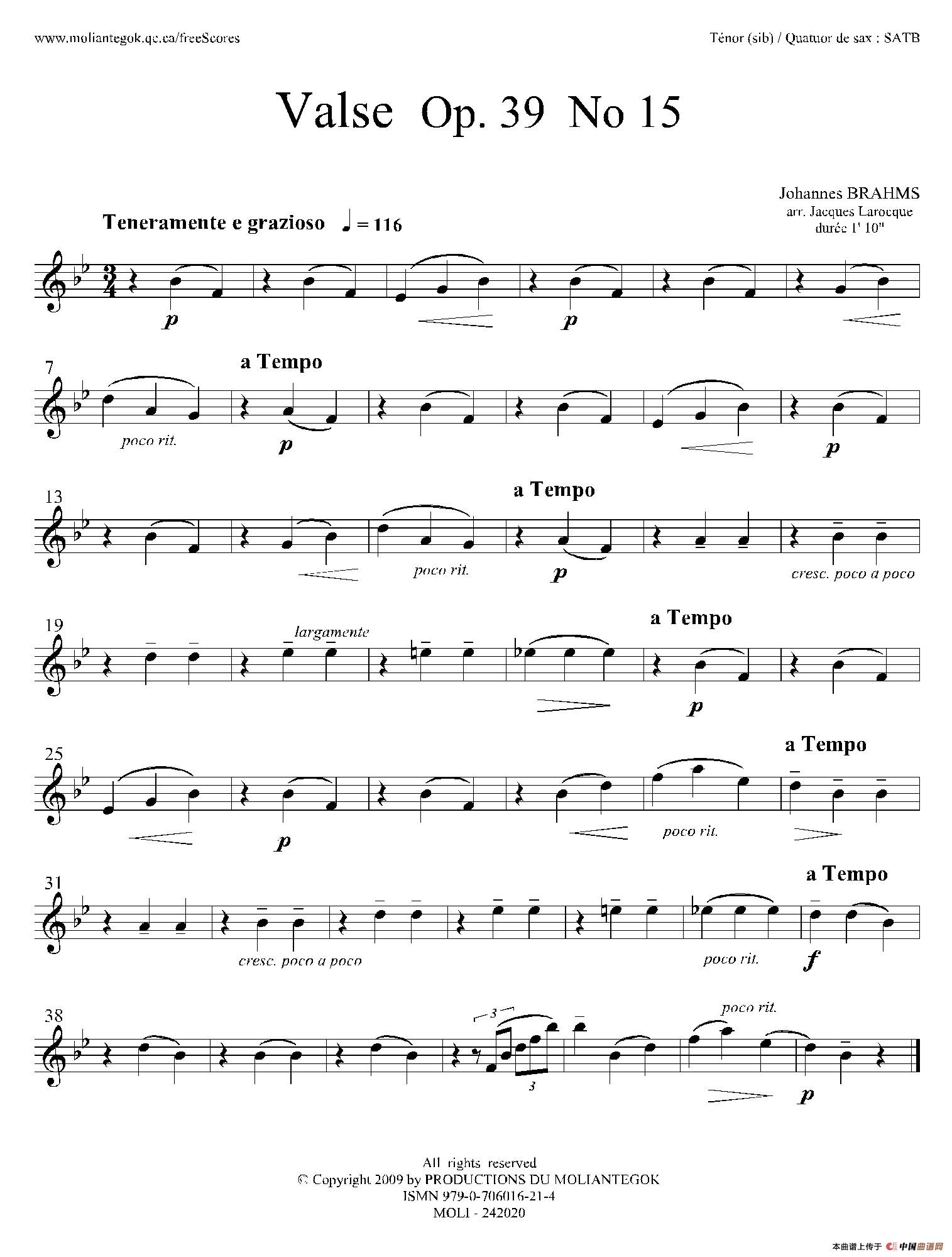圆舞曲 Op39 No15(四重奏次中音萨克斯分谱)