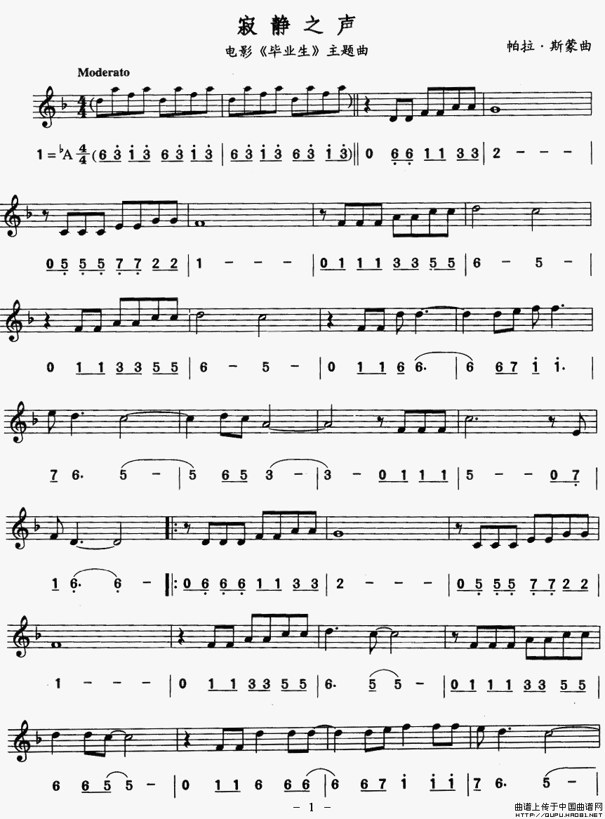 寂静之声(电影《毕业生》主题歌)(线简谱对照版)