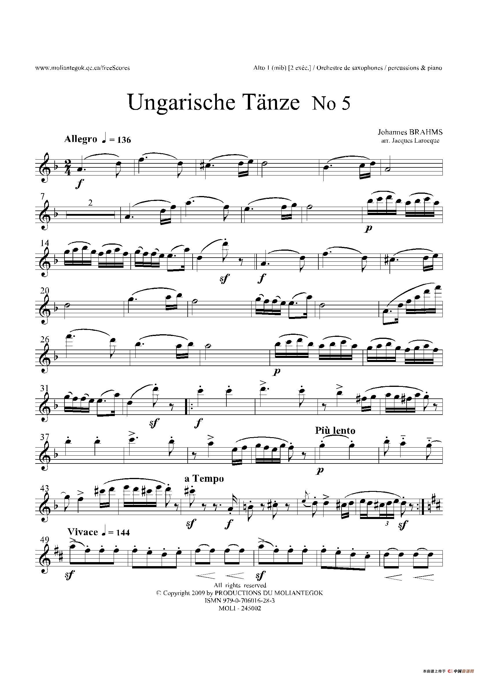 UngarischeTnze No5 十五重奏#8203;分谱萨克斯谱