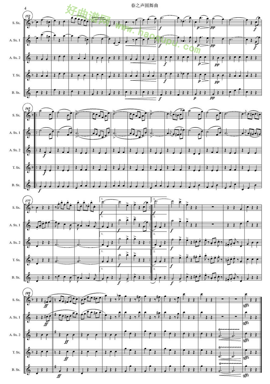 《春之声圆舞曲》(四重奏)萨克斯简谱