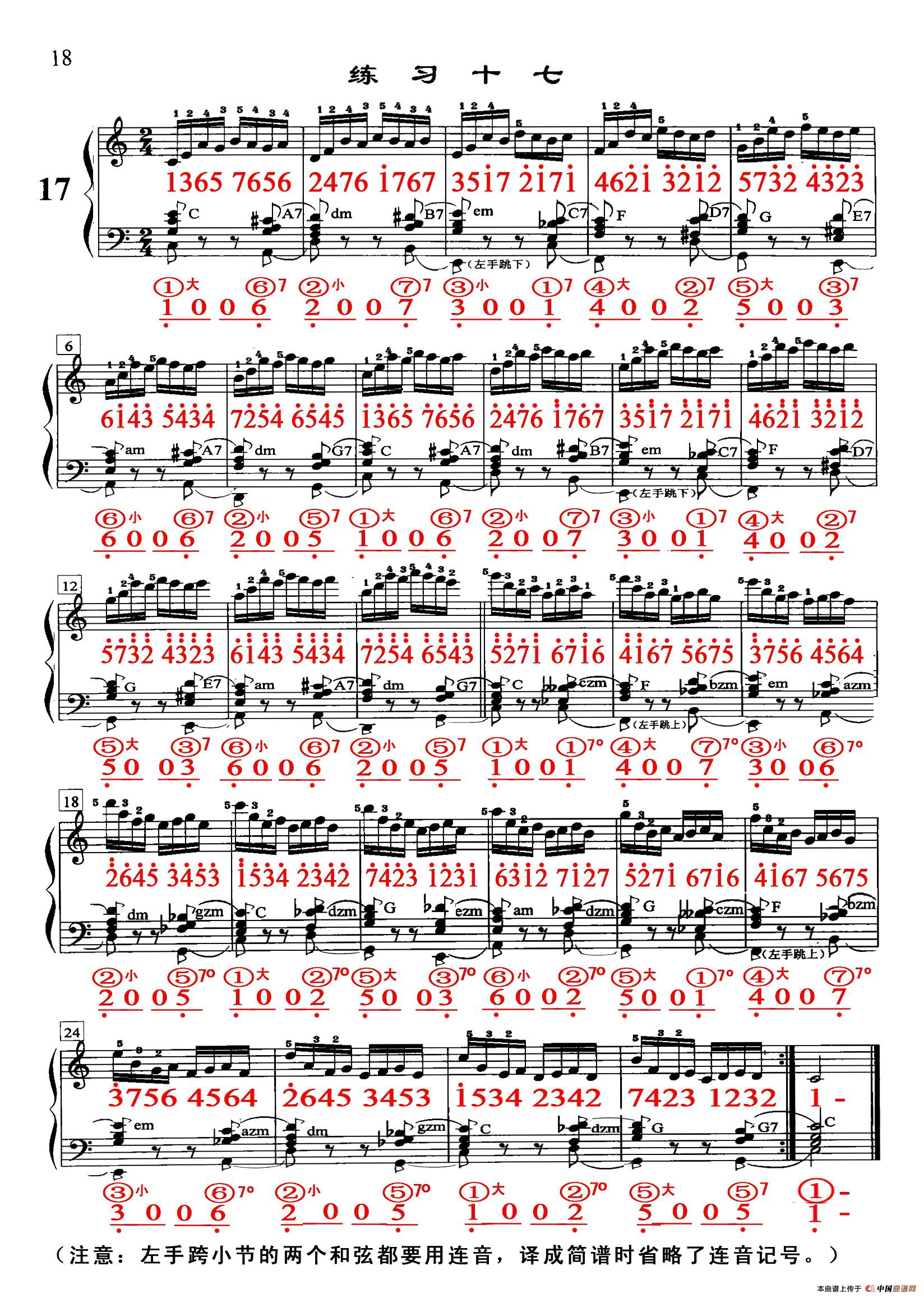 哈农《手风琴手指练习》之十七(五线谱+简谱)