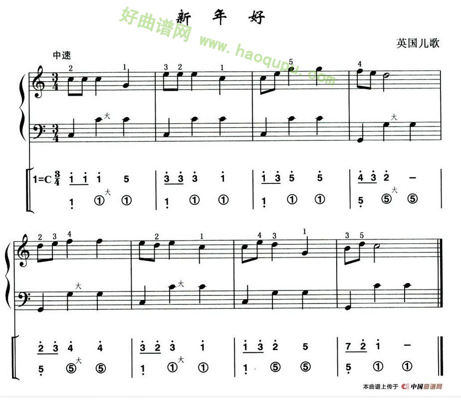 《新年好》(英国儿歌) 手风琴曲谱