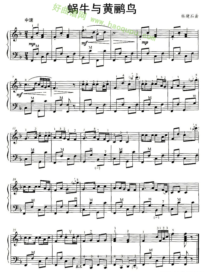 《蜗牛与黄鹂鸟》 手风琴曲谱