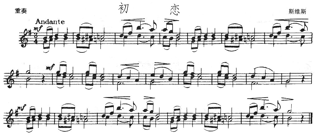 初恋(重奏)小提琴谱该歌谱演奏者为斯维斯,歌曲名称为初恋(重奏),歌谱类型为小提琴谱。初恋是由斯维斯创作的。