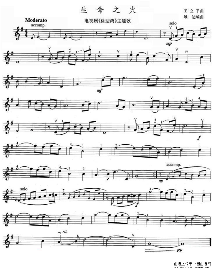 生命之火(电视剧《徐悲鸿》主题歌 [小提琴谱])