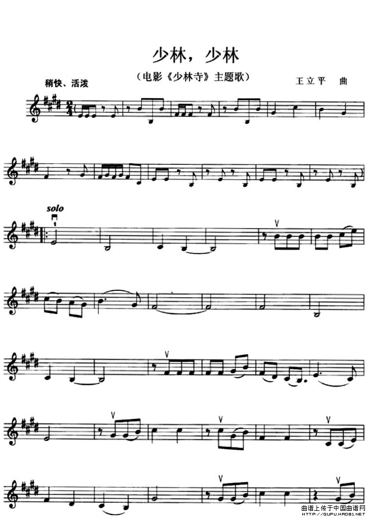 少林,少林(电影《少林寺》主题歌 [小提琴谱])