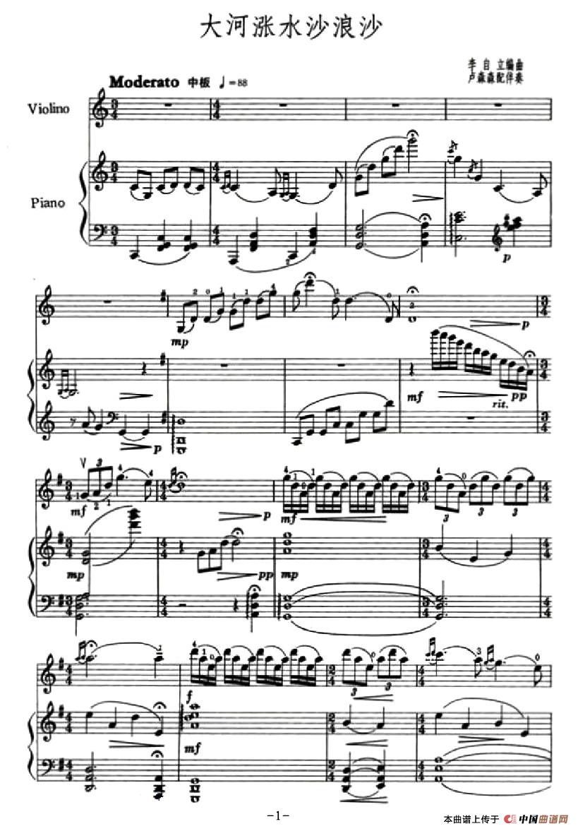 大河涨水沙浪沙(小提琴+钢琴伴奏)小提琴谱