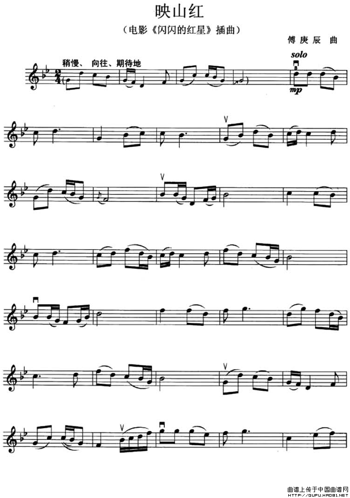 映山红(电影《闪闪的红星》插曲)小提琴谱