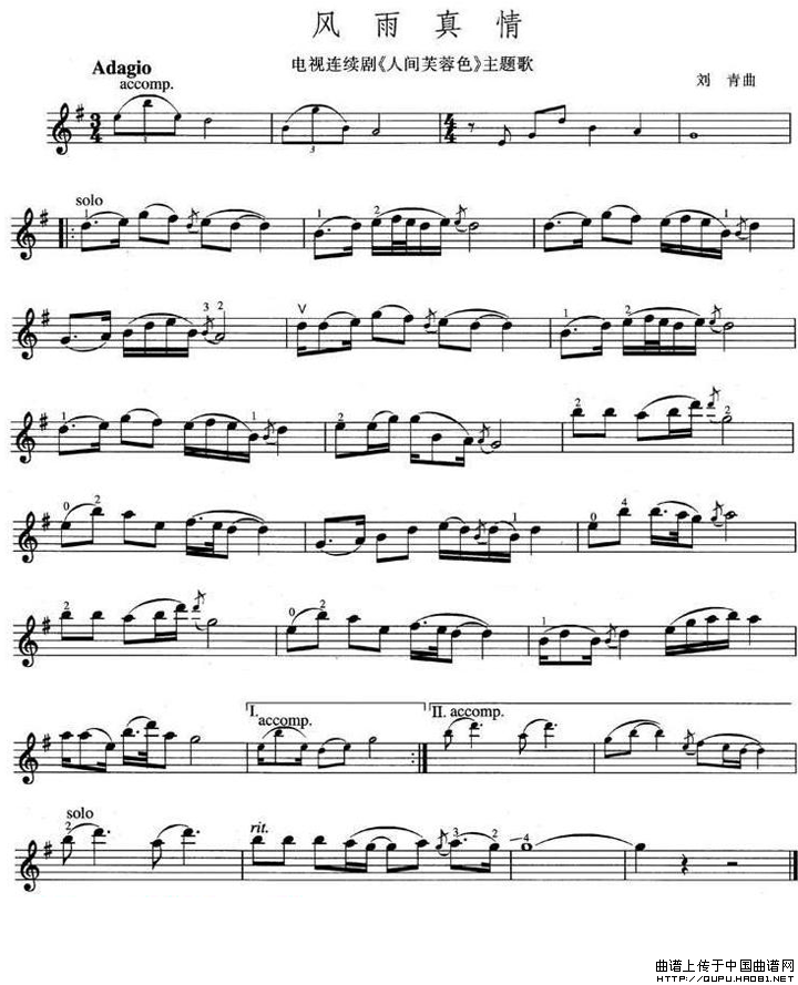 风雨真情(电视剧《人间芙蓉色》主题歌)小提琴谱