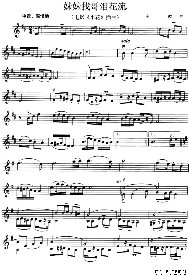 妹妹找哥泪花流(电影《小花》插曲)小提琴谱