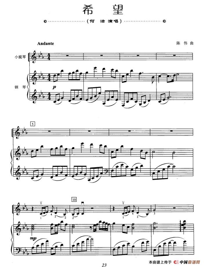 二胡乐谱曲谱 我的祖国(二胡二重奏 影片《上甘岭