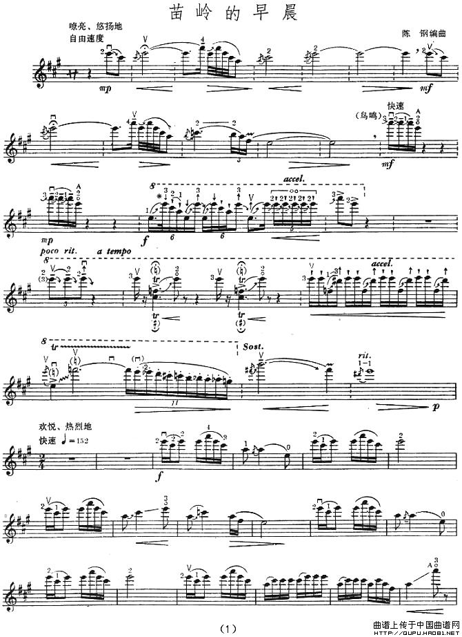 葫芦丝乐谱曲谱 明亮的眼睛(黎巴嫩民歌)