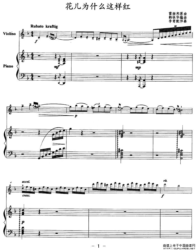 花儿为什么这样红(小提琴钢琴)小提琴谱