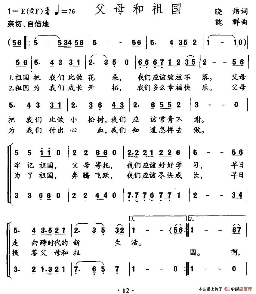 二胡乐谱曲谱 我的祖国(二胡二重奏 影片《上甘岭