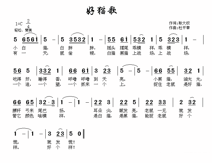 好猫歌 好猫歌简谱-儿歌曲谱 曲谱 歌谱下载