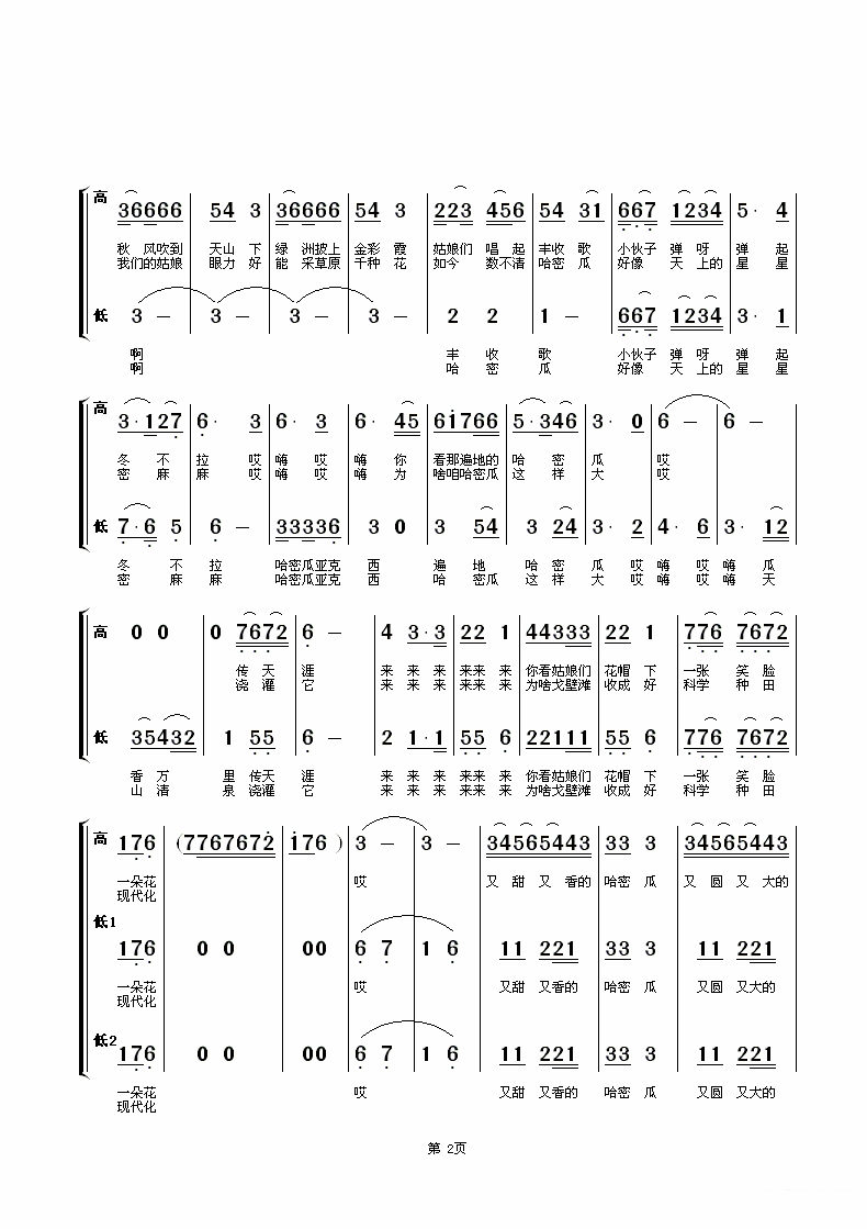 P2:南通市通师二附合唱团《哈密瓜熟了》简谱(第2页)