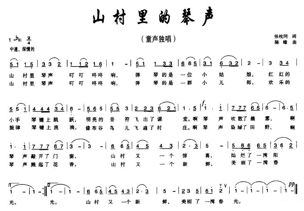 山村里的琴声 童声独唱:山村里的琴声简谱-儿歌曲谱 曲谱 歌谱下载