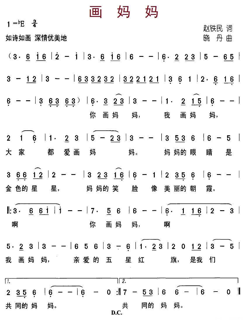 画妈妈 画妈妈(赵铁民词 晓丹曲)简谱-儿歌曲谱 曲谱 歌谱下载