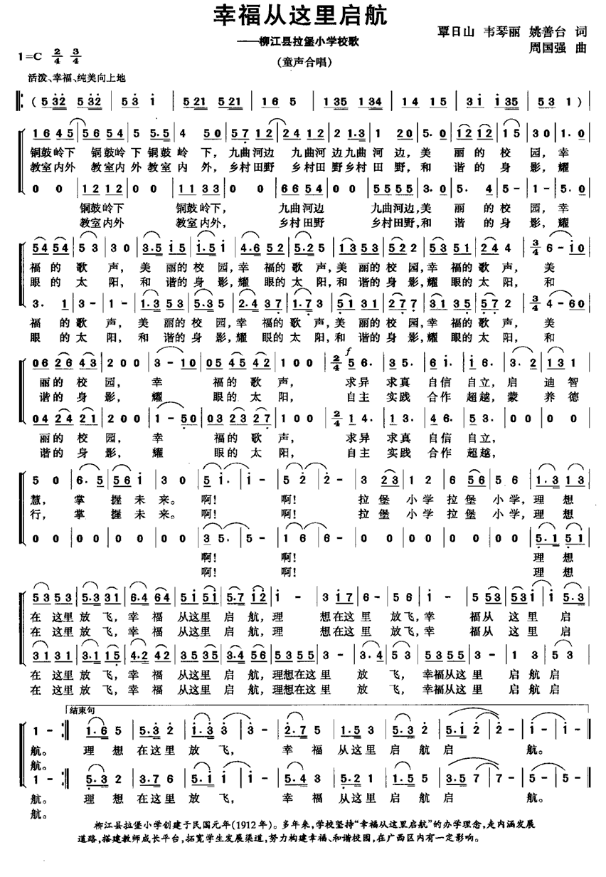 幸福从这里启航 幸福从这里启航(柳江县拉堡小学校歌 童声合唱)简谱-儿歌曲谱 曲谱 歌谱下载