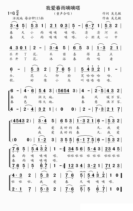 我爱春雨嘀嘀嗒 我爱春雨嘀嘀嗒(吴克敏词曲)简谱-儿歌曲谱 曲谱 歌谱下载