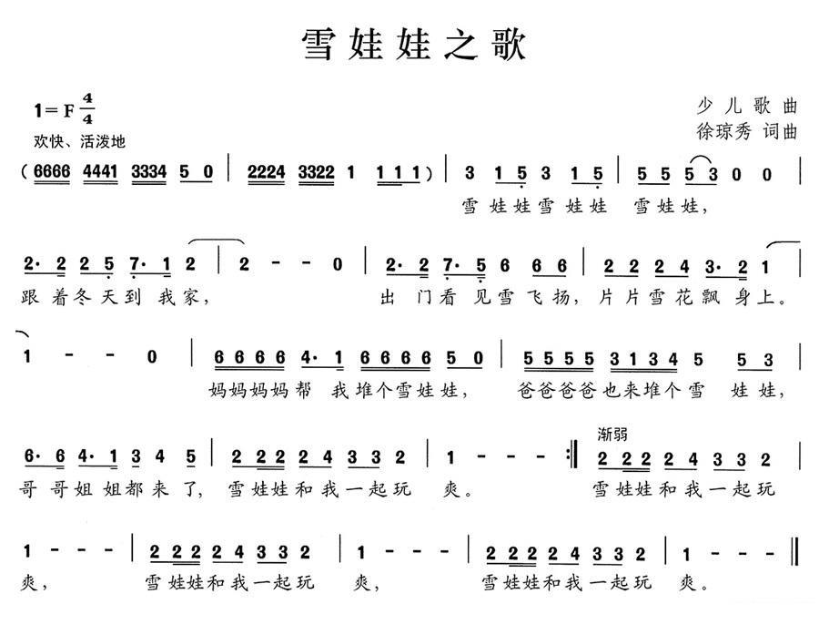 雪娃娃之歌 雪娃娃之歌(徐琼秀词曲)简谱-儿歌曲谱 曲谱 歌谱下载