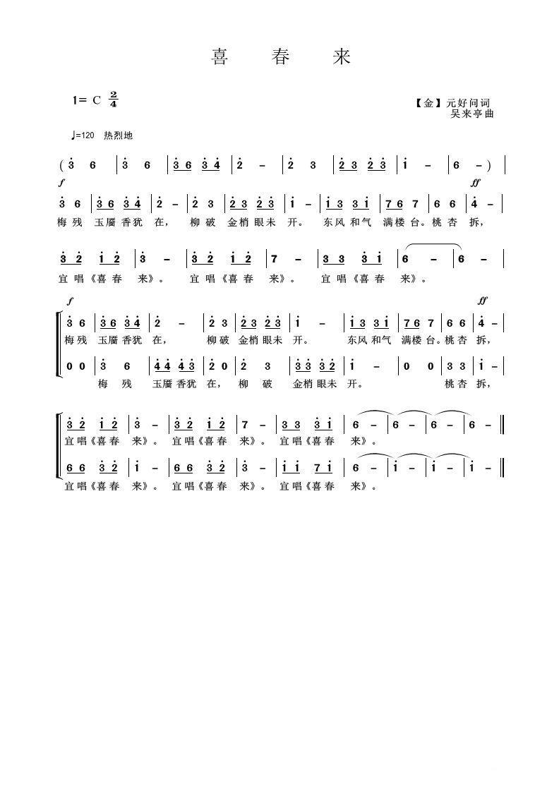 喜春来 喜春来(吴来亭曲 元好问词)简谱-儿歌曲谱 曲谱 歌谱下载