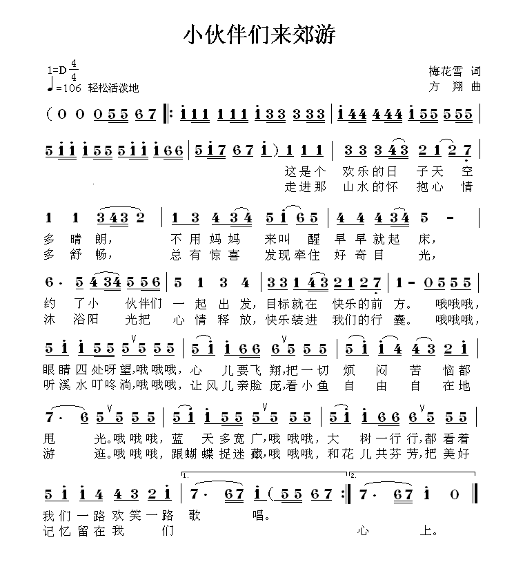 小伙伴们来郊游 小伙伴们来郊游(方翔曲 梅花雪词)简谱-儿歌曲谱 曲谱 歌谱下载