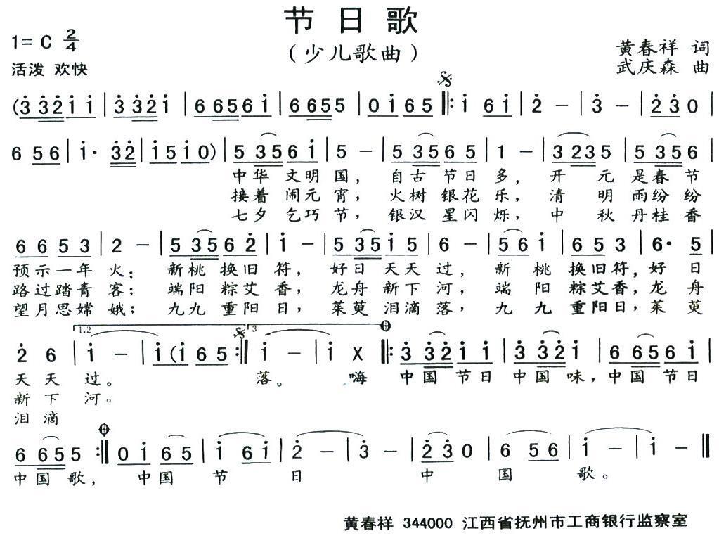 节日歌 节日歌(武庆森曲 黄春祥词)简谱-儿歌曲谱 曲谱 歌谱下载