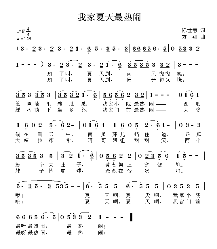 我家夏天最热闹 我家夏天最热闹(方翔曲 陈世慧词)简谱-儿歌曲谱 曲谱 歌谱下载