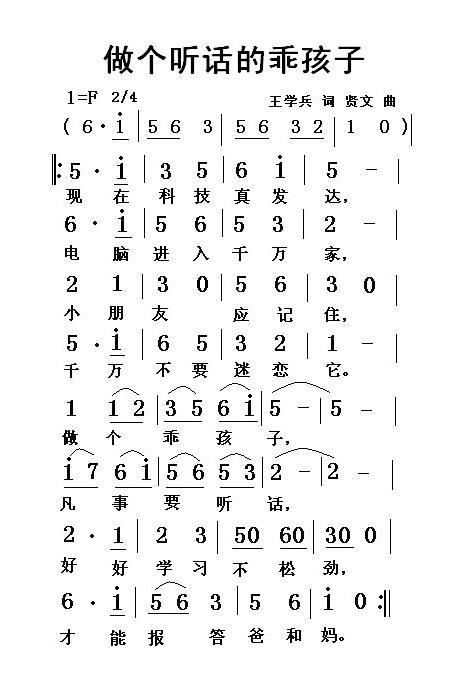 做个听话的乖孩子 做个听话的乖孩子(贤文曲 王学兵词)简谱-儿歌曲谱 曲谱 歌谱下载