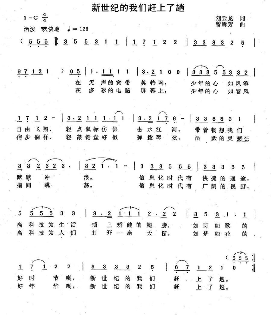 新世纪的我们赶上了趟 新世纪的我们赶上了趟(曾腾芳曲 刘云龙词)简谱-儿歌曲谱 曲谱 歌谱下载