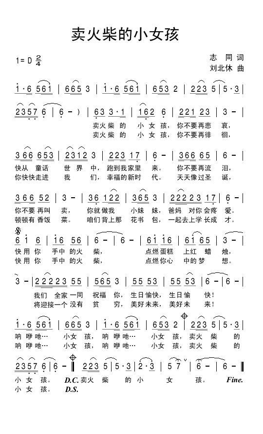 卖火柴的小女孩 卖火柴的小女孩(志同词 刘北休曲)简谱-儿歌曲谱 曲谱 歌谱下载